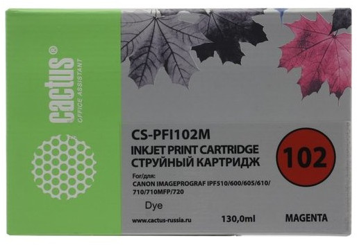 Описание Картридж Cactus CS-PFI102M Magenta для Canon iPF510/600/605/610/710/720