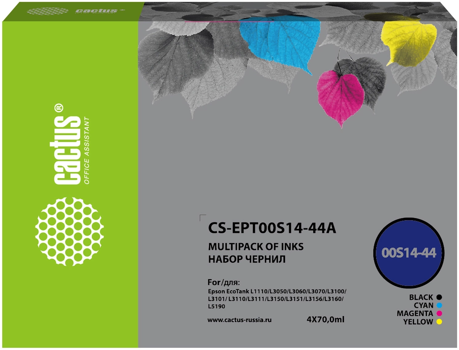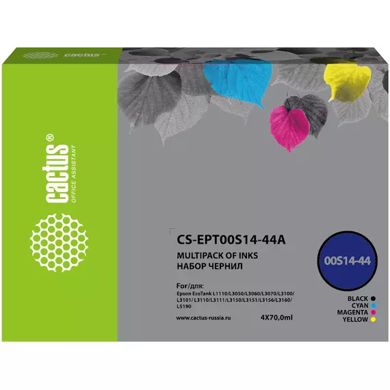 Чернила Cactus CS-EPT00S14-44A 103 многоцветный набор 4x70мл для Epson L1110 Ecotank/L3100/L3101/L3110/L3150/L3151