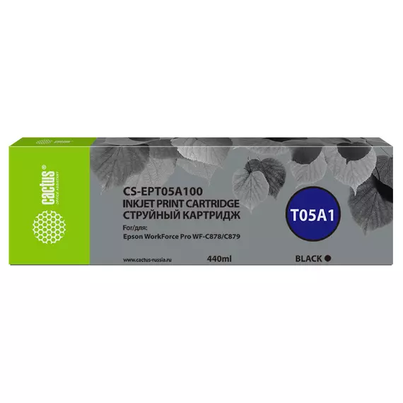Картридж струйный Cactus CS-EPT05A100 черный пигментный (440мл) для Epson WorkForce Pro WF-C878/WF-C879 с чипом