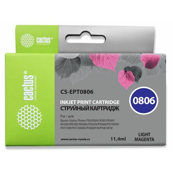 Картридж струйный Cactus CS-EPT0806 светло-пурпурный (11.4мл) для Stylus Photo P50/PX650/PX660/PX700/PX700W/PX710/PX710W/PX720/PX720WD/PX800/PX800FW/PX810/PX810FW/PX820/PX820FWD/R265/R285/R360/RX560/RX585/RX685 с чипом