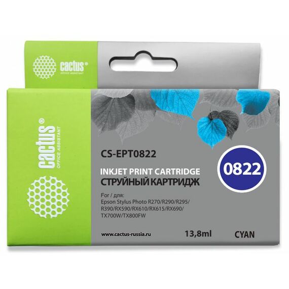Картридж струйный Cactus CS-EPT0822 голубой (13.8мл) для Epson Stylus Photo R270/290/RX590 с чипом