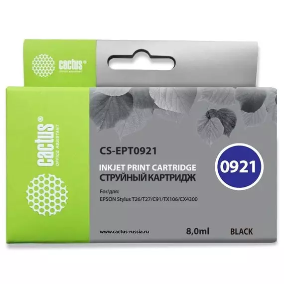 Картридж струйный Cactus CS-EPT0921 черный (8мл) для Epson Stylus C91/CX4300/T26/T27/TX106/TX109/TX117/TX119 с чипом