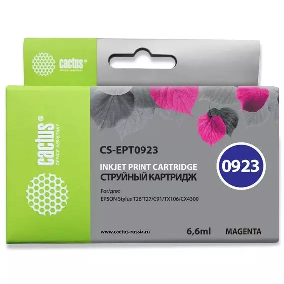 Картридж струйный Cactus CS-EPT0923 пурпурный (6.6мл) для Epson Stylus C91/CX4300/T26/T27/TX106/TX109/TX117/TX119 с чипом