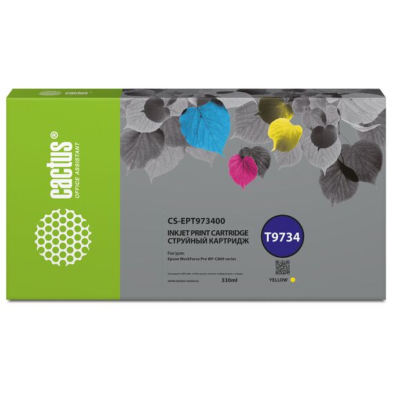 Картридж струйный Cactus CS-EPT973400 T9734 желтый (330мл) для Epson WorkForce WF-C869RD3TWFC/WF-C869RDTWF
