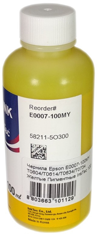 Чернила InkTec E0013-100MY 100мл, Еpson T0684/T0694/ T0714/T0734/T0884/T0894/T0914/T0924/T1004/T1034 Pigment