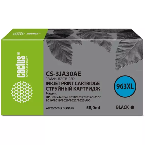 Картридж струйный Cactus CS-3JA30AE 963XL черный пигментный (58мл) для HP OfficeJet Pro 9010/9010e/9012/9014/9015/9016/9019 с чипом