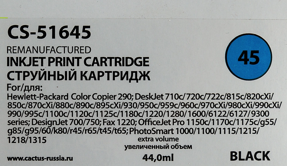 Картридж струйный Cactus CS-51645 №45 черный 44мл для HP DJ 710c/720c/722c/815c/820cXi/850c/870cXi/880c с чипом [51645AE (№45)]