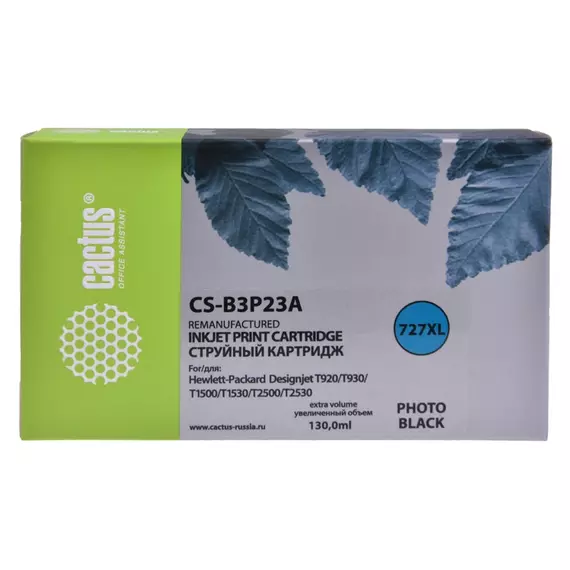 Картридж струйный Cactus CS-B3P23A №727 фото черный (130мл) для HP DJ T920/T1500 с чипом