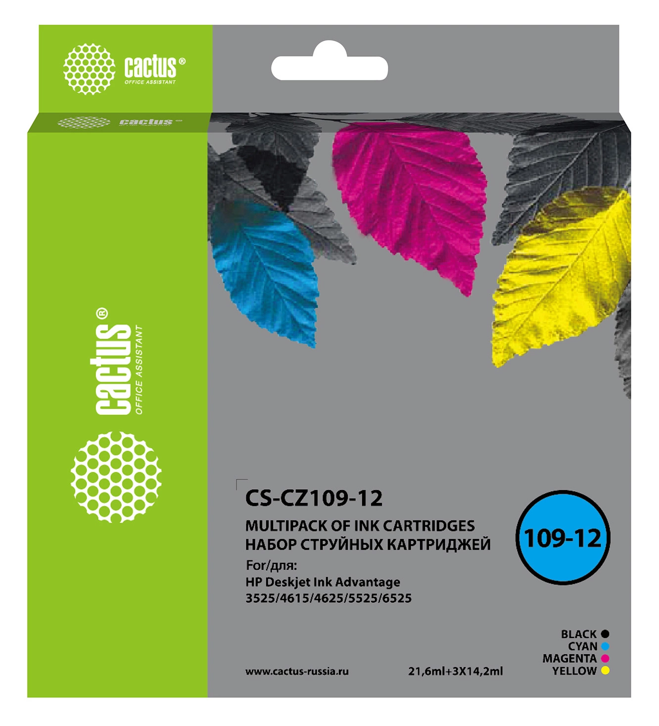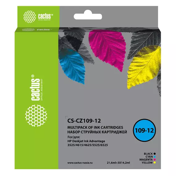Картридж струйный Cactus CS-CZ109-12 черный/голубой/желтый/пурпурный набор (64.2мл) для HP DJ IA 3525/5525/4525 с чипом