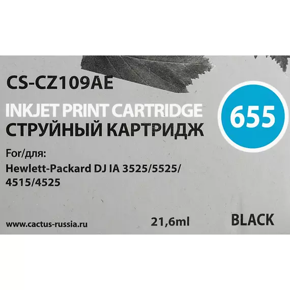 Картридж струйный Cactus CS-CZ109AE №655 черный пигментный (21.6мл) для HP DJ IA 3525/5525/4525 с чипом