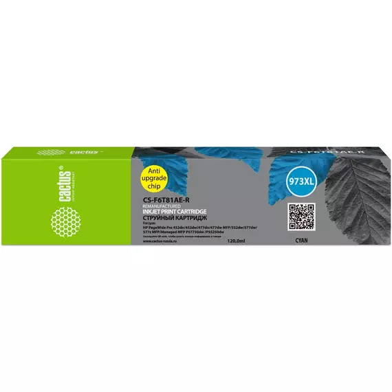 Картридж струйный Cactus CS-F6T81AE-R 973XL голубой 7000стр. 120мл для HP PageWide Pro 452dw/477dw с чипом