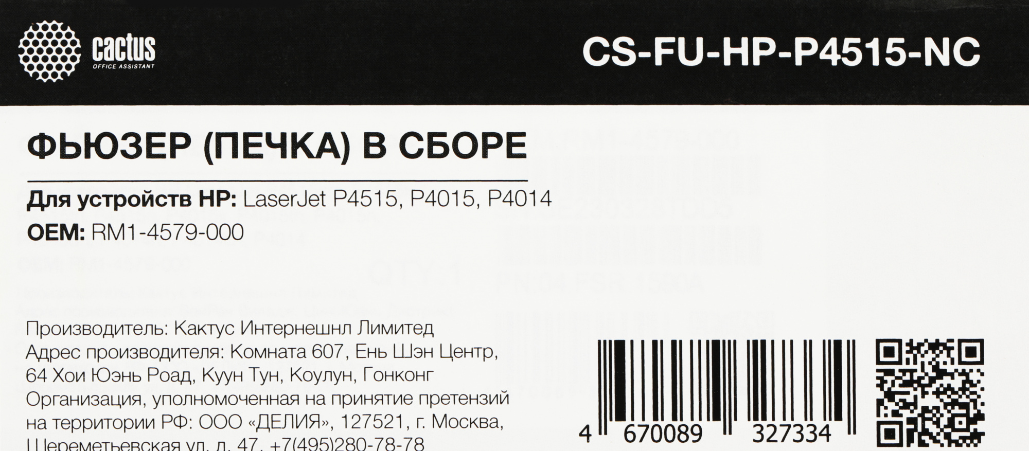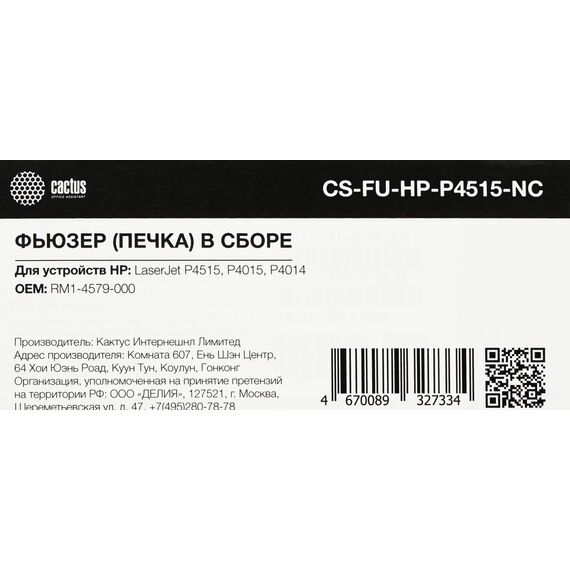Печка в сборе Cactus CS-FU-HP-P4515-NC (RM1-4579/CB506-67902) (новая) для HP LJ P4014/P4015/P4515