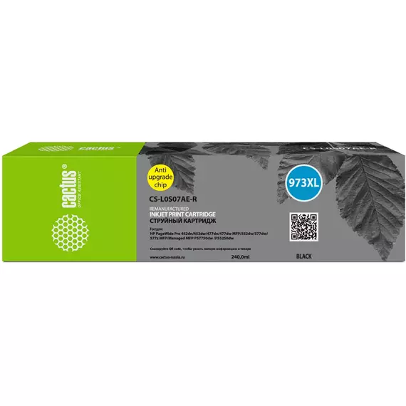 Картридж струйный Cactus CS-L0S07AE-R 973XL черный 10000стр 240мл для HP PageWide Pro 452dw/477dw с чипом