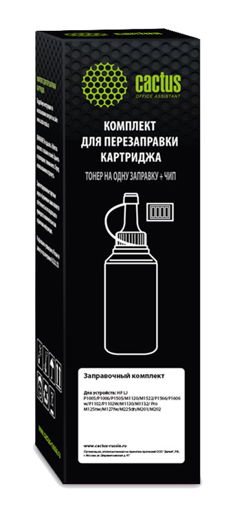 Тонер Cactus CS-RK-CE285A черный флакон 85гр. в компл.:чип для принтера LJ P1005/M1120/P1606w; Pro M125nw