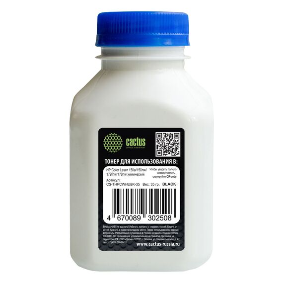 Тонер Cactus CS-THPCWHUBK-35 черный флакон 35гр. для принтера HP Color W2070/1/2/3