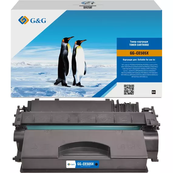 Картридж лазерный G&G GG-CE505X черный (6500 стр.) для HP LaserJet P2055d/P2055dn/P2055x; LaserJet Pro 400 M401/M401a/M401n/M401d/M401dn/M401dne/M401dw/MFP M425/MFP M425dn/MFP M425dw с чипом Canon i-SENSYS LBP6300dn/6310dn/6650dn/6670dn/6680x/MF5840dn/MF5880dn/MF5940dn/MF5980dw