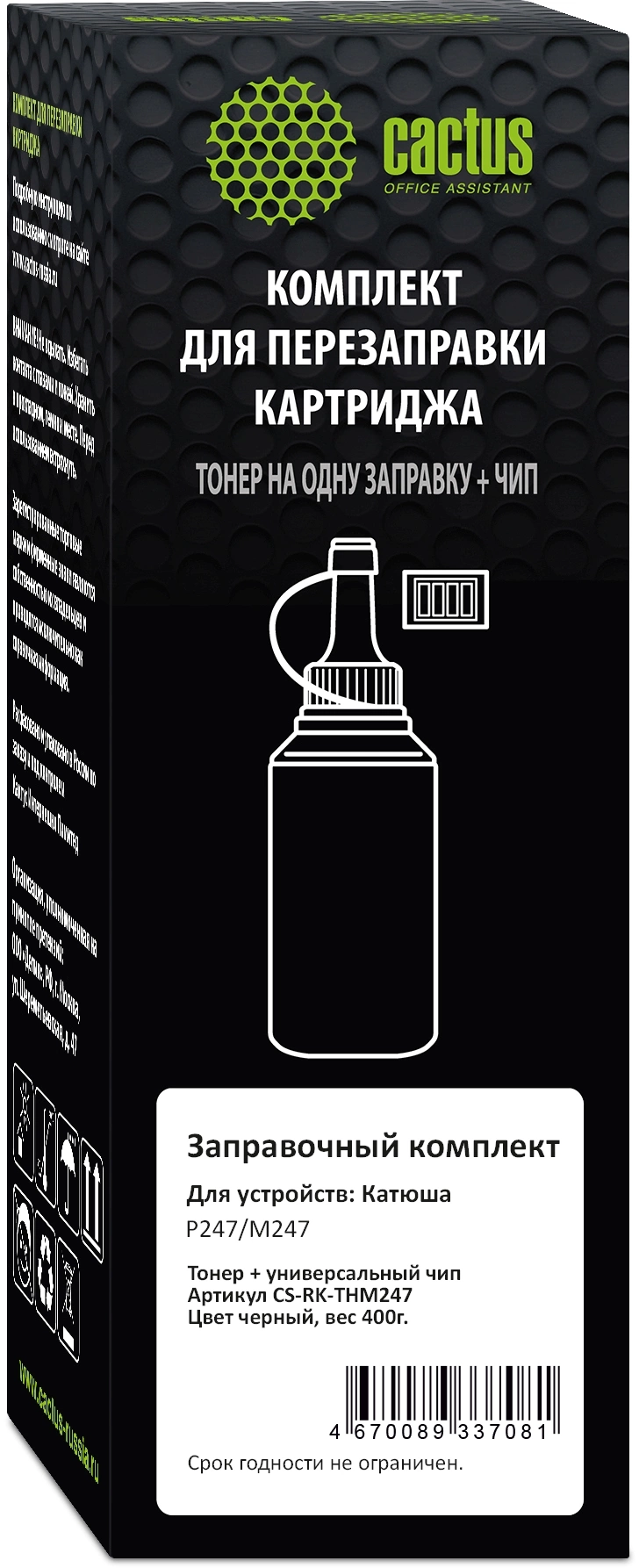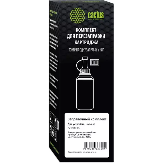Тонер Cactus CS-RK-THМ247 черный флакон 400гр. (в компл.:чип) для принтера Катюша Р247/М247