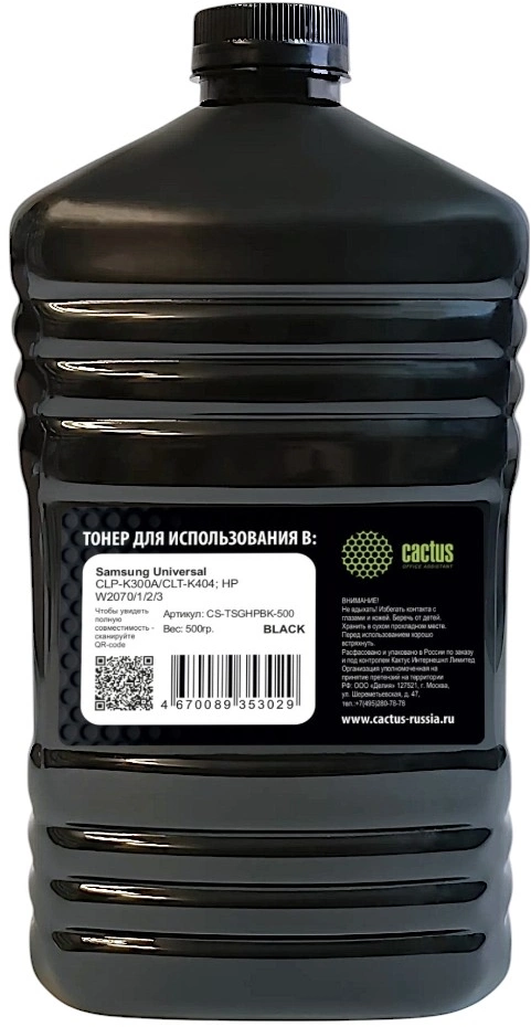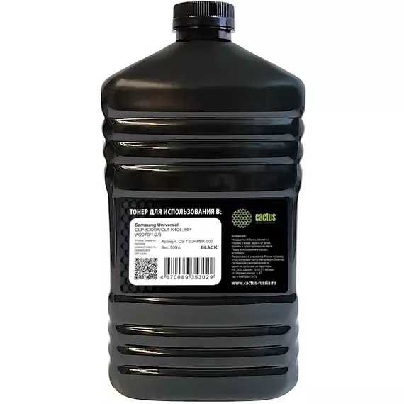 Тонер Cactus CS-TSGHPBK-500 черный флакон 500гр для принтера Universal CLP-K300A/CLT-K404; HP W2070/1/2/3