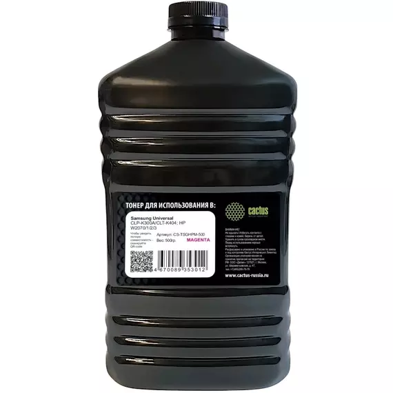 Тонер Cactus CS-TSGHPM-500 пурпурный флакон 500гр для принтера Universal CLP-K300A/CLT-K404; W2070/1/2/3
