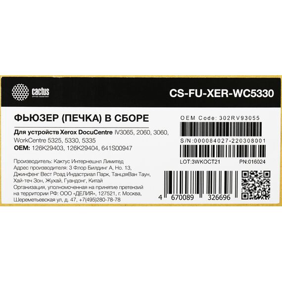 Печка в сборе Cactus CS-FU-XER-WC5330 (126K29403/126K29404) для Xerox (восст) WC 5325/5330/5335