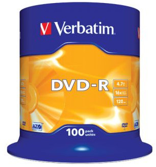 Диски DVD-R Verbatim 4.7Gb 16x уп. 100 шт, на шпинделе [43549]