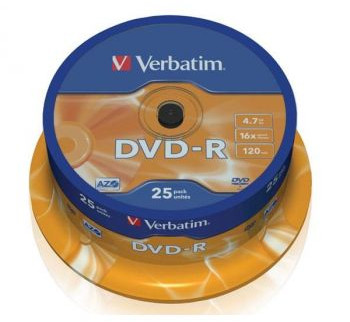 Диски DVD-R Verbatim 4.7Gb 16x уп. 25 шт., на шпинделе [43522]