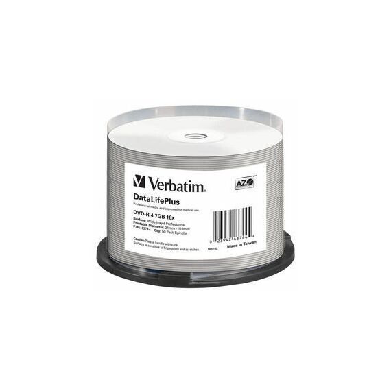 Диск Verbatim DVD-R 4.7Gb 16x Cake Box Printable 50шт [43744]