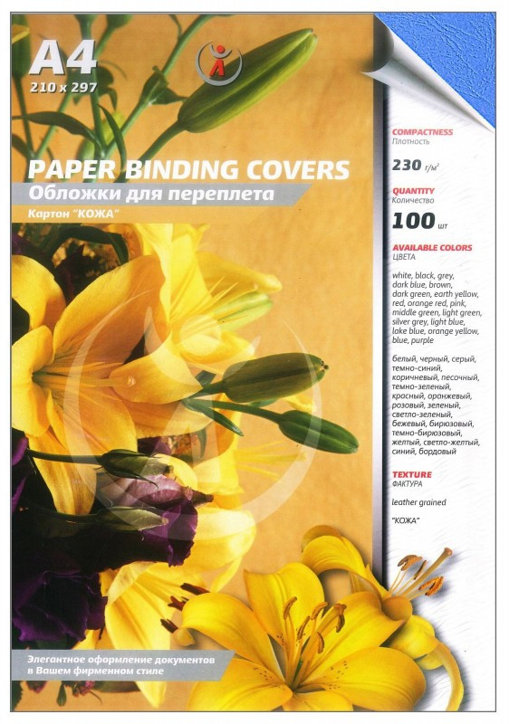 Обложки картон кожа А4 230г/м2 синие 100 шт