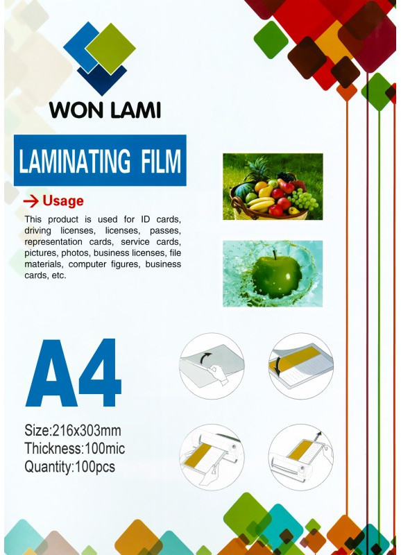 Пленка для ламинирования 216х303 А4, 100мкм, 100 шт, WF