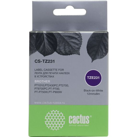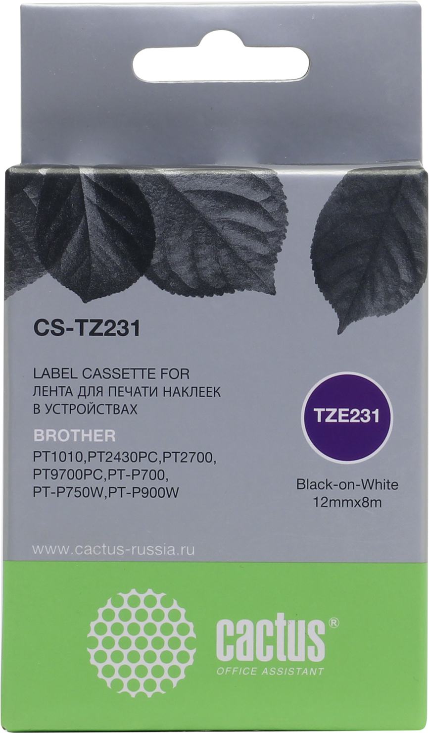 Лента для печати этикеток Cactus CS-TZ231 ширина 12мм, 8м, чёрный на белом