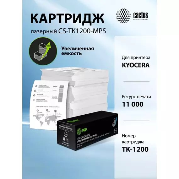 Картридж лазерный Cactus CS-TK1200-MPS TK-1200 черный 11000стр для P2335d/P2335dn/P2335dw/M2235dn/M2735dn/M2835dw