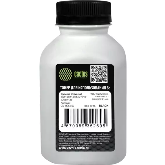 Тонер Cactus CS-TKY3-50 черный флакон 50гр. для принтера Universal TK4105/4145/475/7310/7205/7125