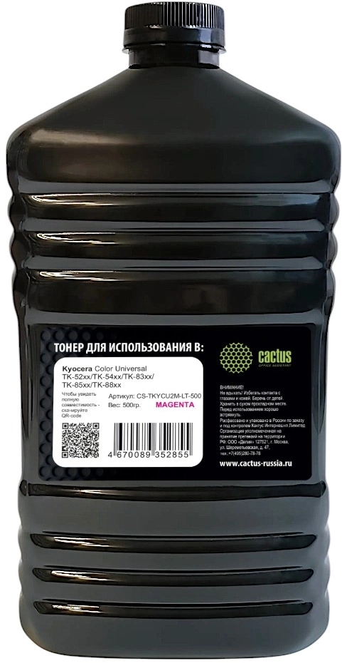 Тонер Cactus CS-TKYCU2M-LT-500 пурпурный флакон 500гр. для принтера Kyocera Color Universal TK-52xx/TK-54xx/TK-83xx/TK-85xx/TK-88xx