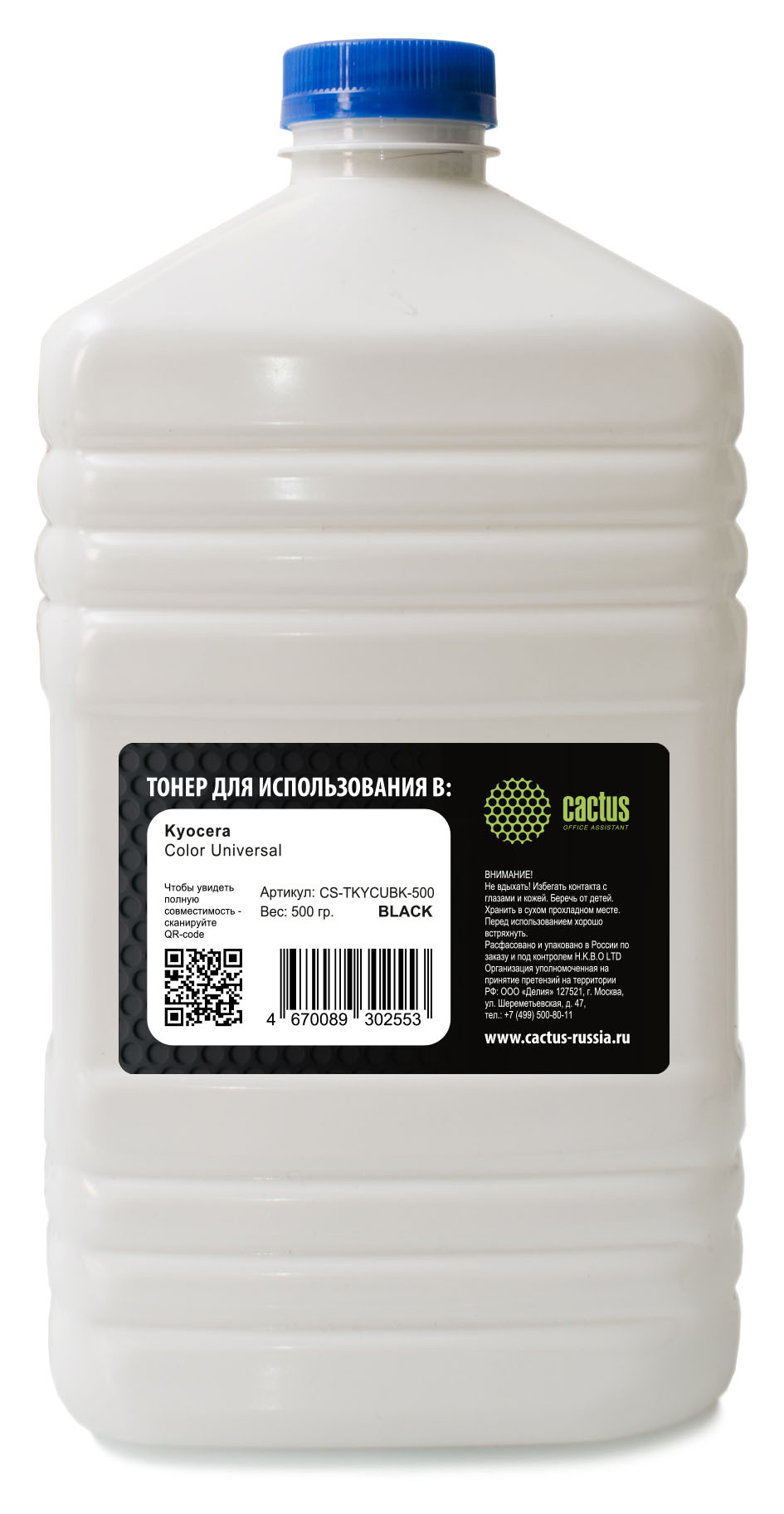 Тонер Cactus CS-TKYCUBK-500 черный флакон 500гр. для принтера Kyocera Color Universal TK-5хх/5270/8xx/8115/8305