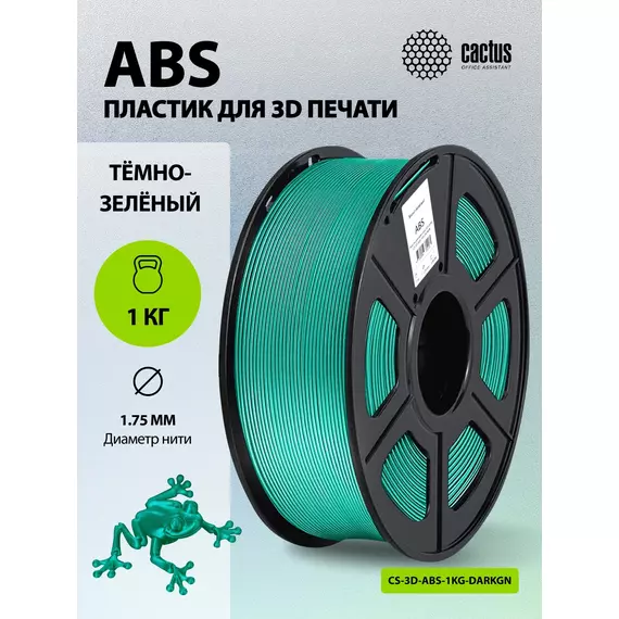 Пластик для принтера 3D Cactus CS-3D-ABS-1KG-DARKGN ABS d1.75мм 1кг L386м 1цв