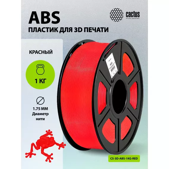 Пластик для принтера 3D Cactus CS-3D-ABS-1KG-RED ABS d1.75мм 1кг L386м 1цв