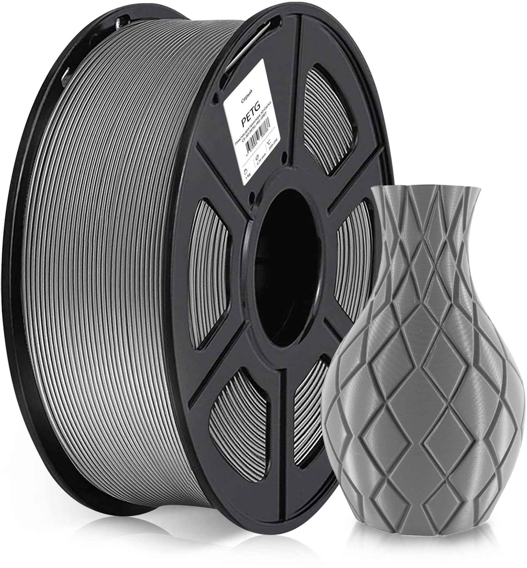 Пластик для принтера 3D Cactus CS-3D-PETG-1KG-GREY PETG d1.75мм 1кг L316м 1цв