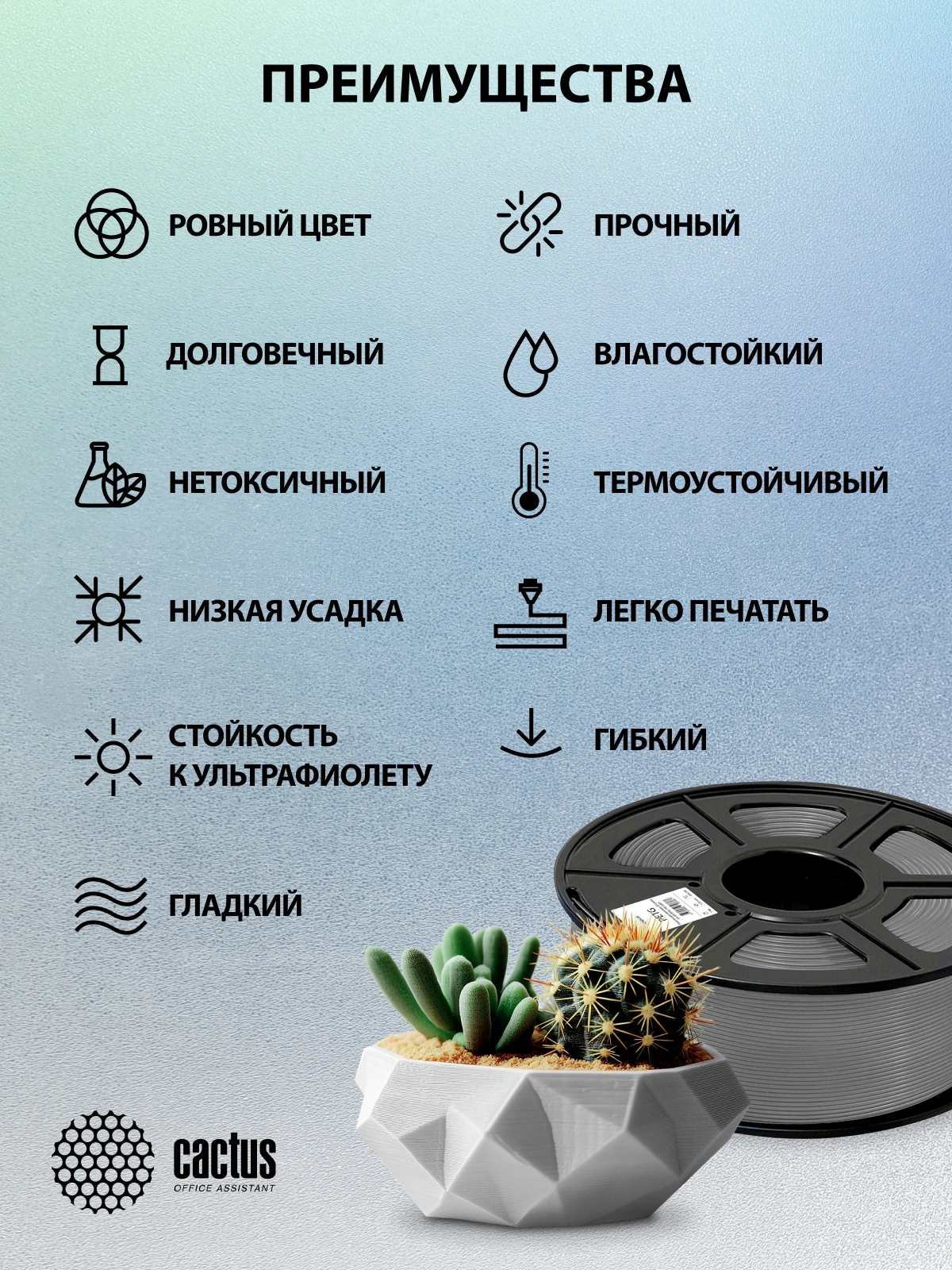 Описание Cactus CS-3D-PETG-1KG-GREY