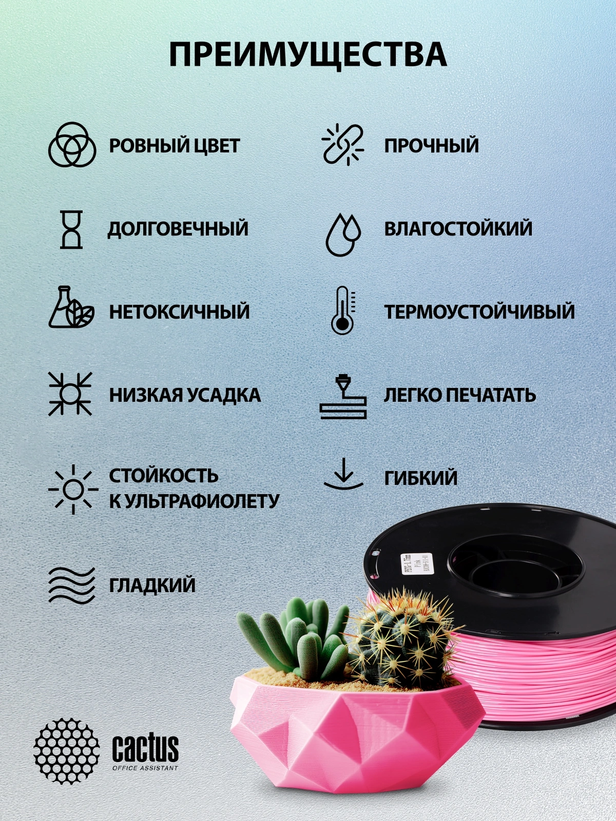 Описание Cactus CS-3D-PETG-1KG-PINK