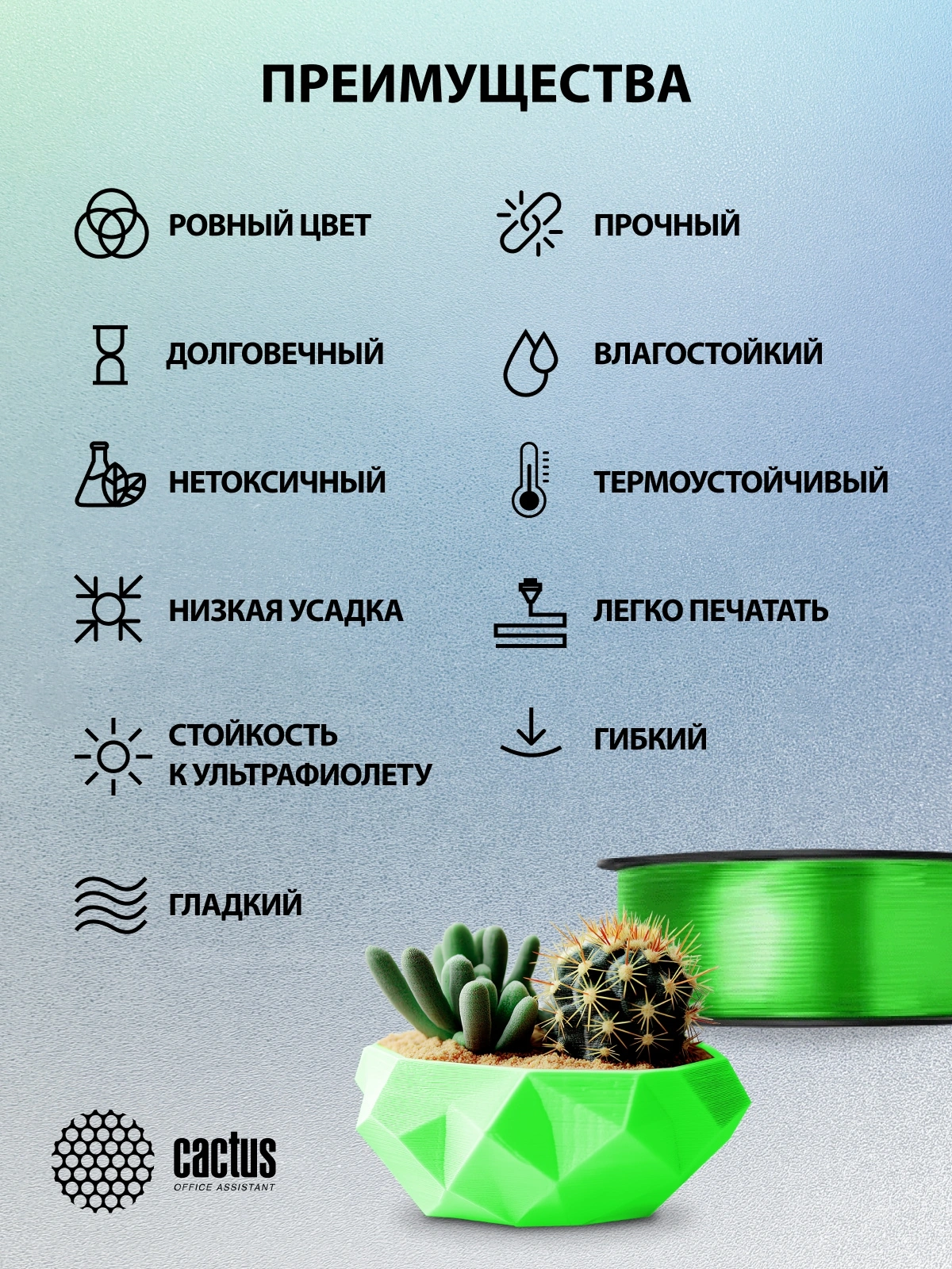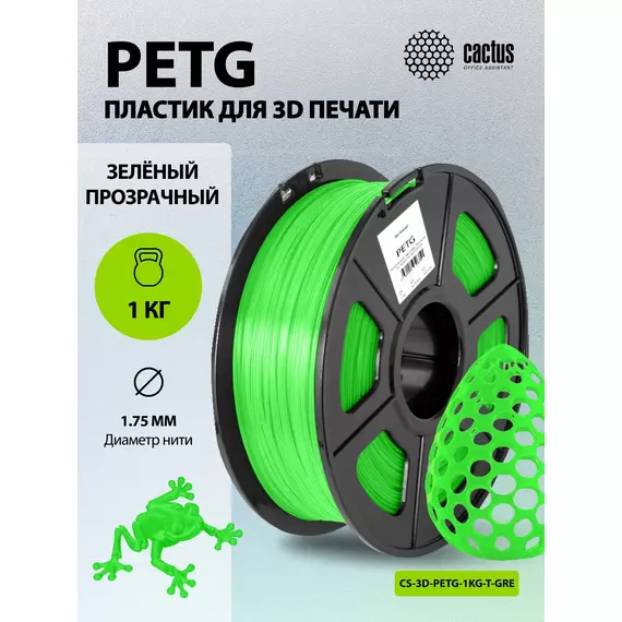 Описание Cactus CS-3D-PETG-1KG-T-GREEN