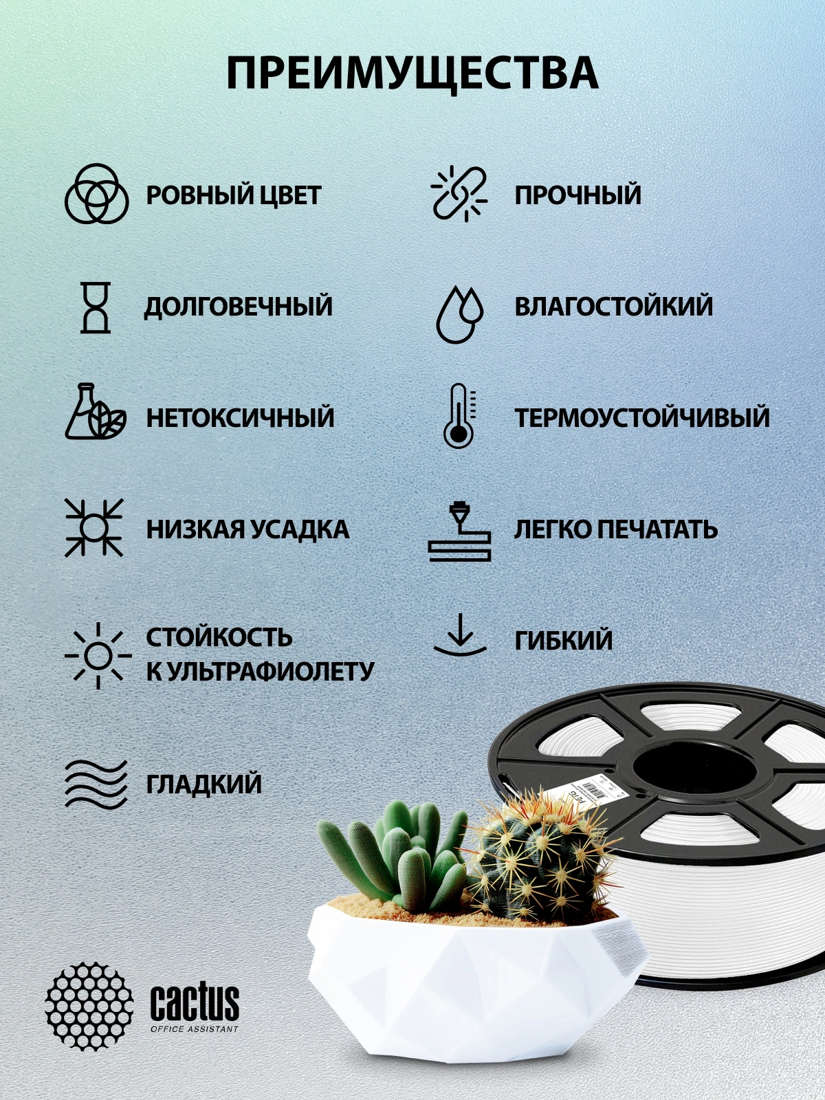 Описание Cactus CS-3D-PETG-1KG-WHITE