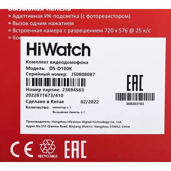 Комплект домофона HiWatch DS-D100K