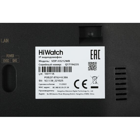 Видеодомофон HiWatch Pro VDP-H3212WB черный