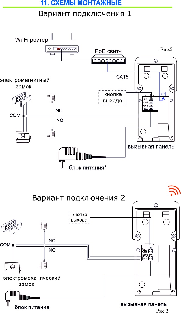 | Комплектность | Вызывная панель видеодомофона с соединительным кабелем (2 контакта) - 2 шт Соединительный кабель (3 контакта) Источник питания 12В/1А Монтажная пластина Монтажный комплект для крепления на стену IC карта - 5 шт Паспорт и упаковочная коробка |