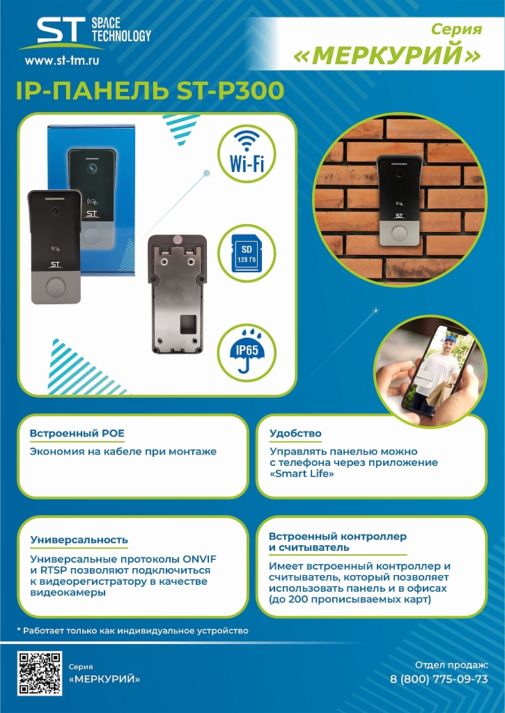 Панель ST ST-P300 серая, серия «Меркурий», 1/2.9 CMOS, 1MP/2MP, IP(720/1080P)