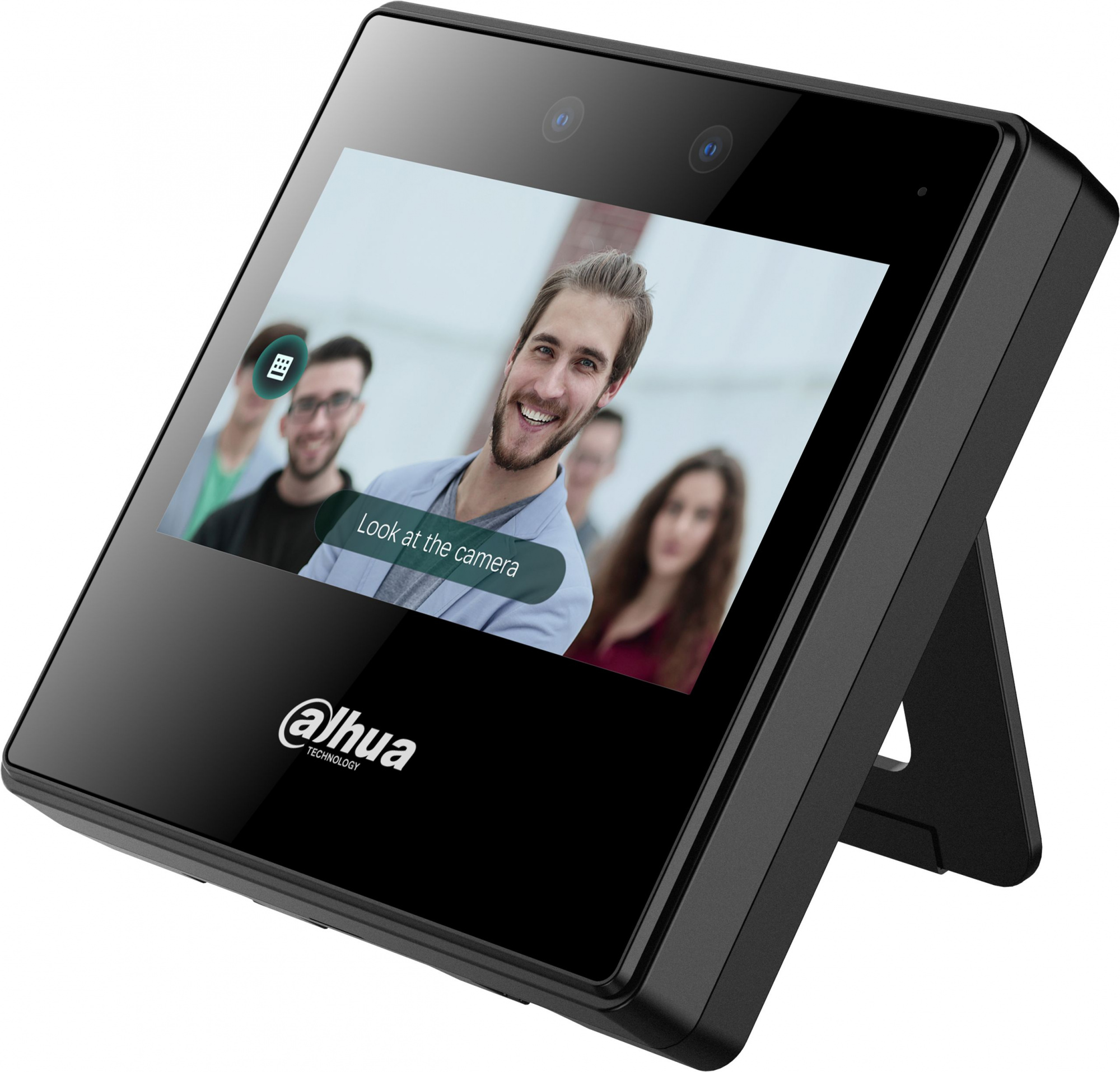 Dahua DHI-ASA3223A-W - Терминал учета рабочего времени с распознаванием лиц и контролем посещаемости c Wi-Fi. 4,3-дюймовый сенсорный ЖК-экран; разрешение 480 × 272. С 2мп двойной широкоугольной камерой и ИК. Разблокировка: лицо и пароль. Поддержка 2000 пользователей, 2000 изображений лиц, 300 000 записей и автономная работа без сети. Расстояние от камеры до лица: 0,3 м – 1,5 м. Точность проверки лица 99,9%; скорость распознавания лиц 0,2 с; определение подлога лица.