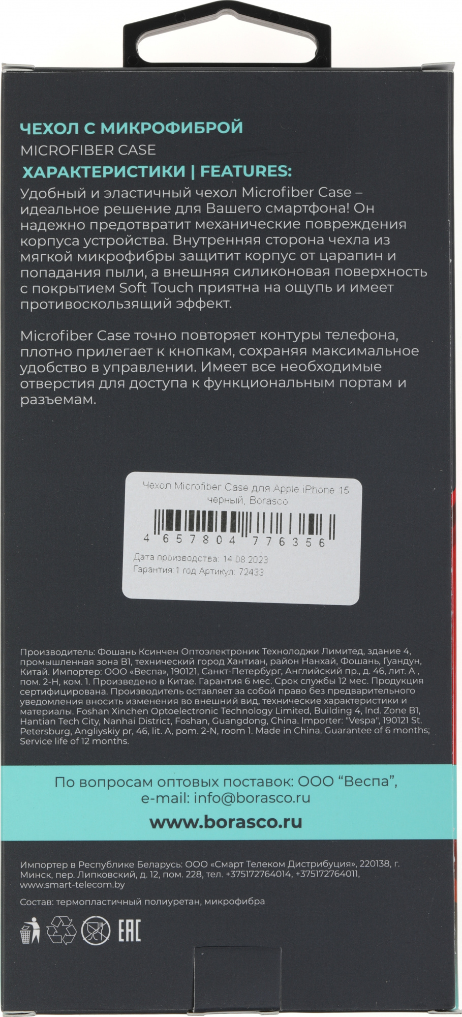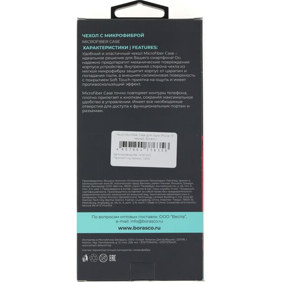 Описание Чехол (клип-кейс) BoraSCO для Apple iPhone 15 Microfiber Case черный [72433]