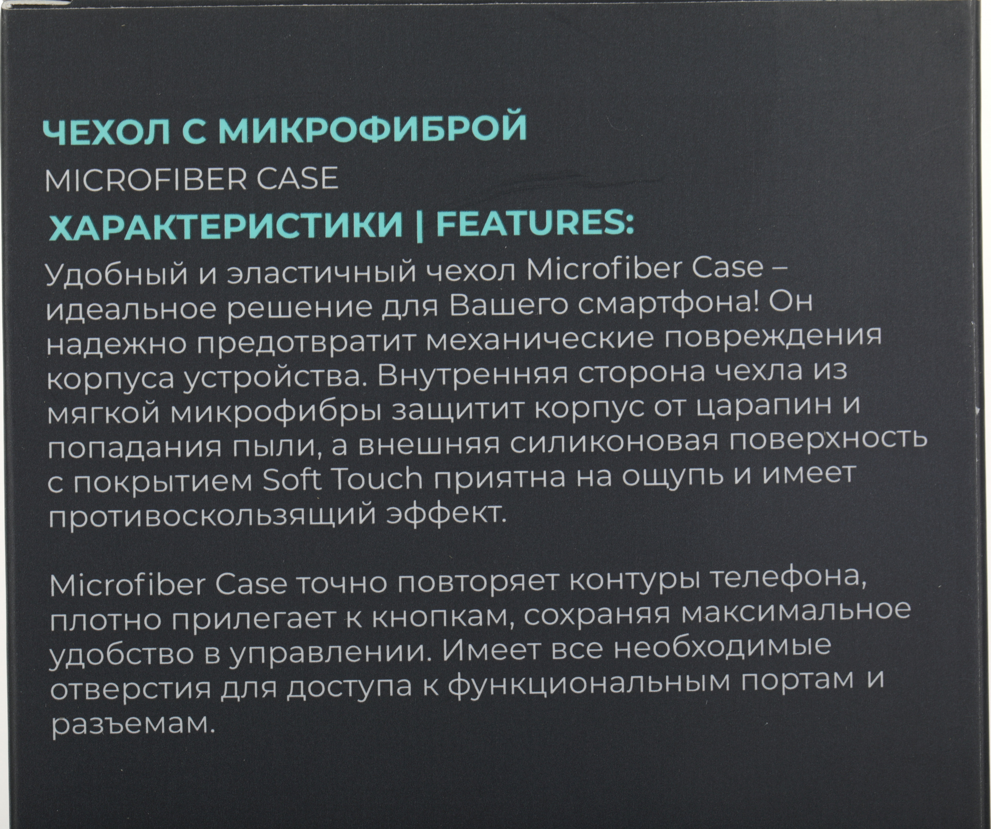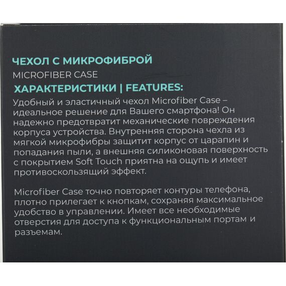 Удобный и эластичный чехол Microfiber Case – идеальное решение для Вашего смартфона. Внутренняя сторона чехла из мягкой микрофибры защитит корпус от царапин и попадания пыли, а внешняя силиконовая поверхность с покрытием Soft Touch приятна на ощупь и имеет противоскользящий эффект.