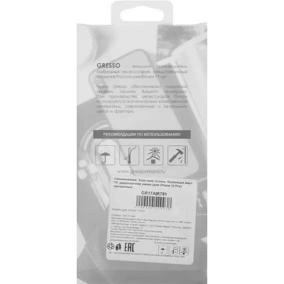 Наличие товара Чехол (клип-кейс) Gresso для Apple iPhone 13 Pro Air + PC прозрачный [GR17AIR791]