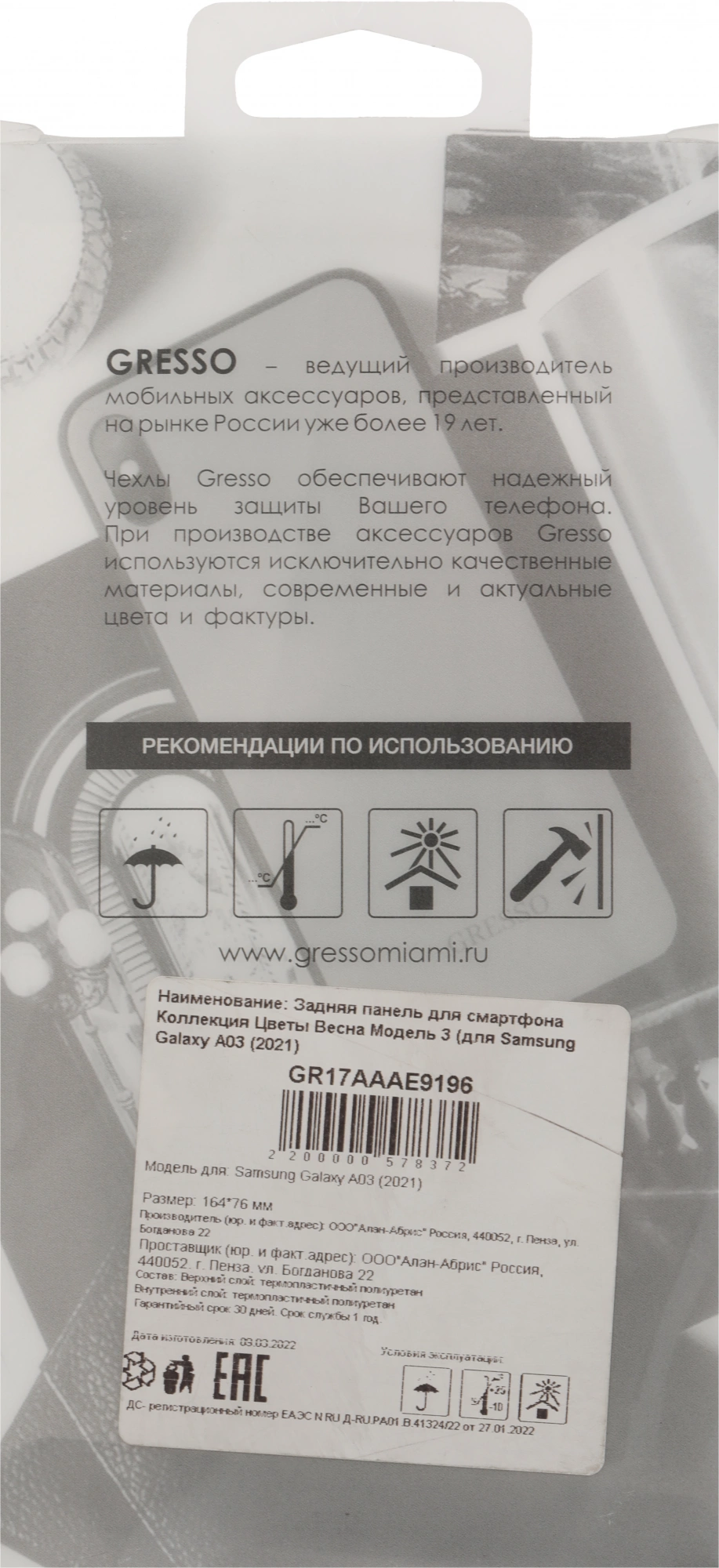Описание Gresso для Galaxy A03 Air [GR17AAAE9196]